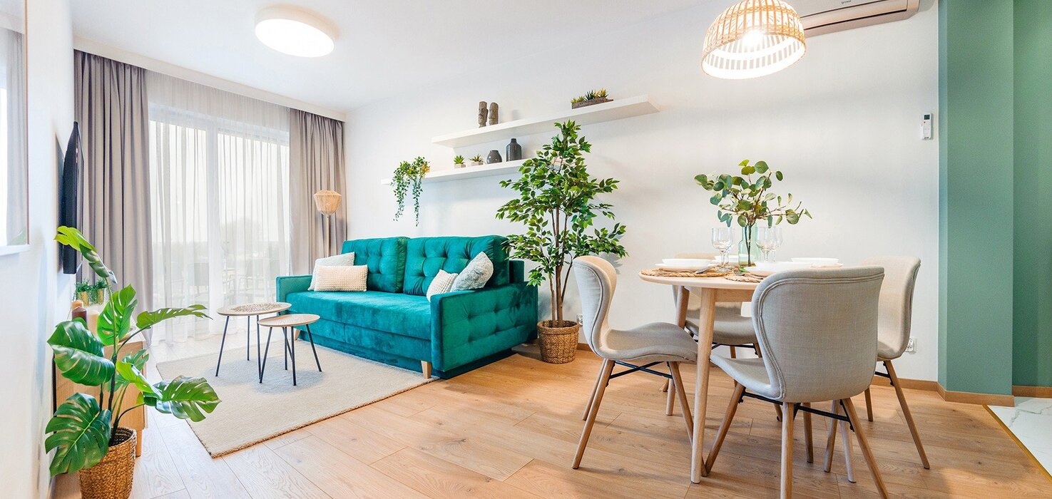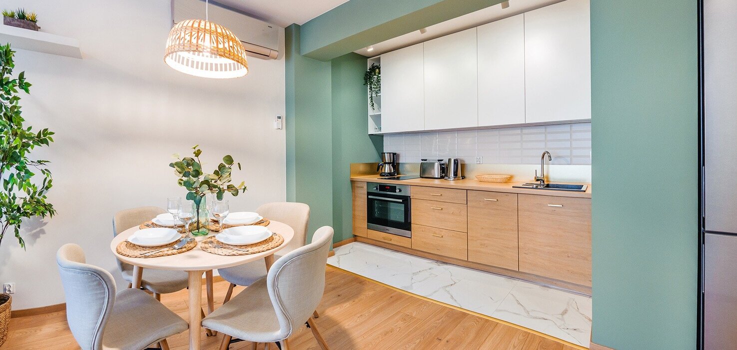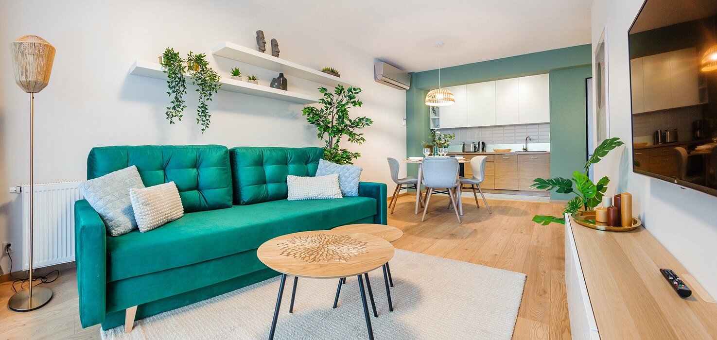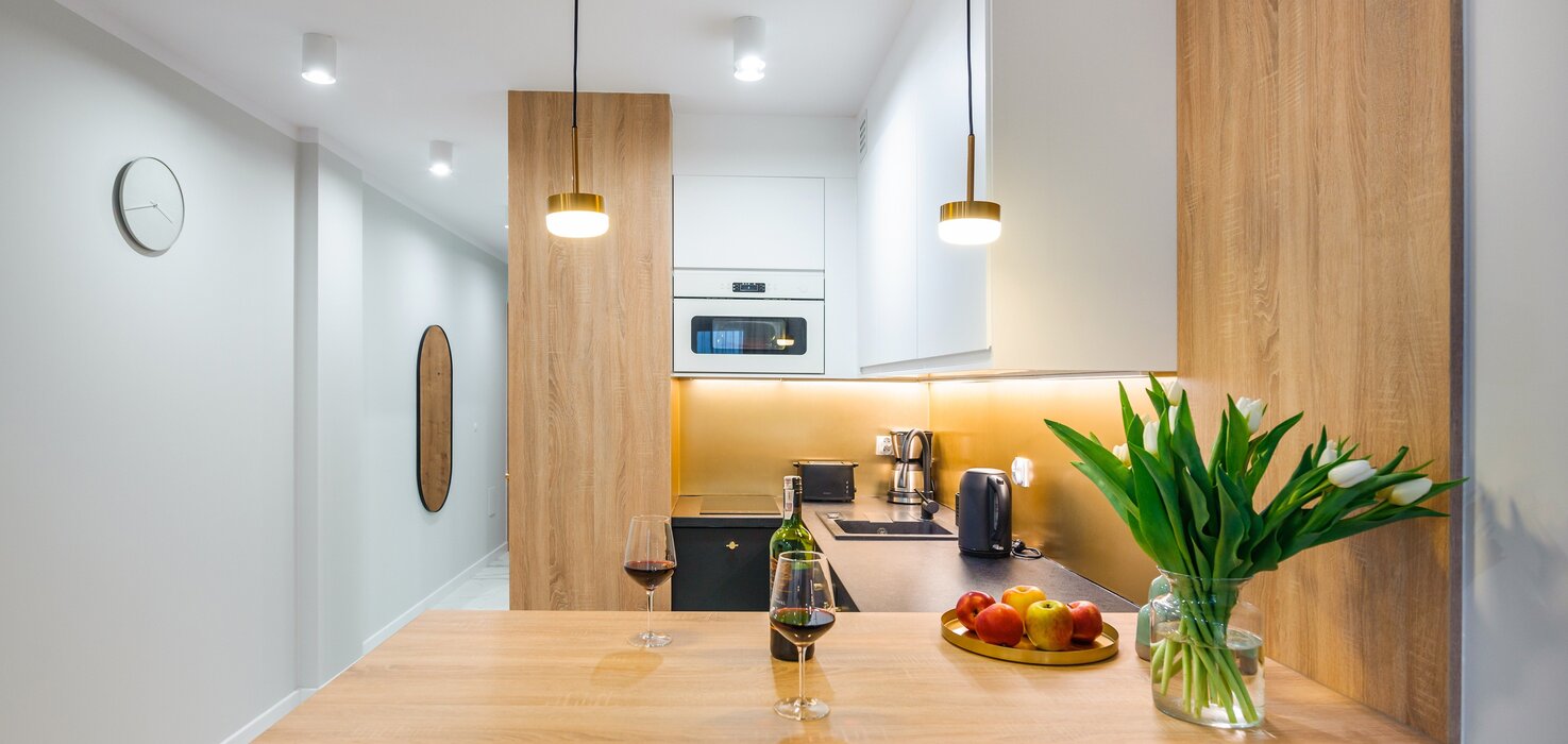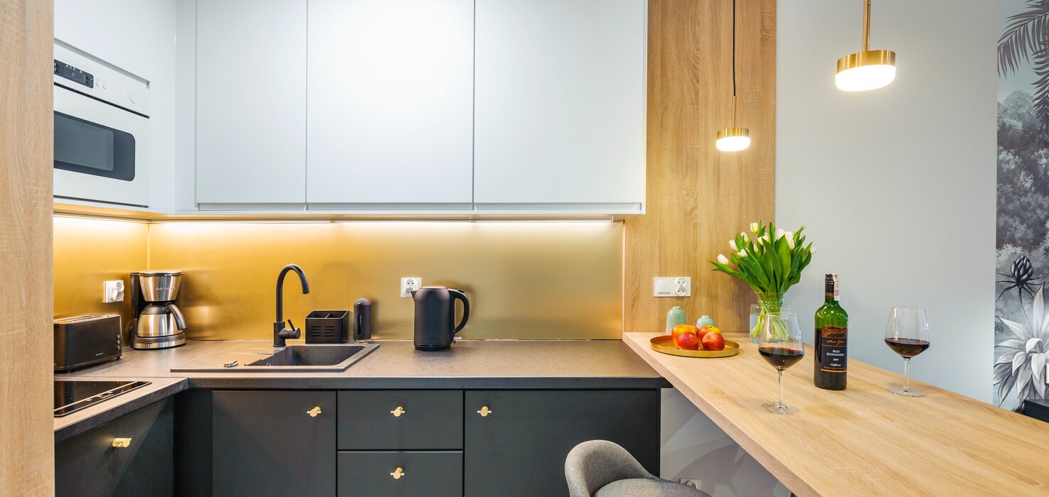 Alle Apartments sind hochwertig ausgestattet, individuell in warmen Farbtönen gestaltet, verfügen über funktionale, komplett ausgestattete Küchenzeilen sowie einen Balkon oder eine Terrasse.