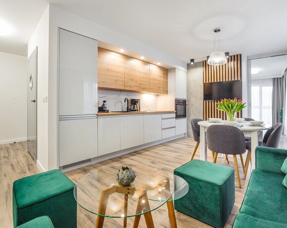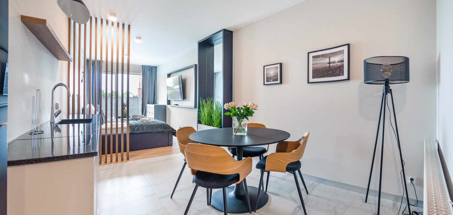 Wir bieten Ihnen luxuriöse Apartments in der Anlage Perłowa Przystań an. Der Komplex befindet sich im westlichen Teil des Kurortes Kołobrzeg, abseits vom Trubel der Stadt und nur 800 Meter vom Strand entfernt.